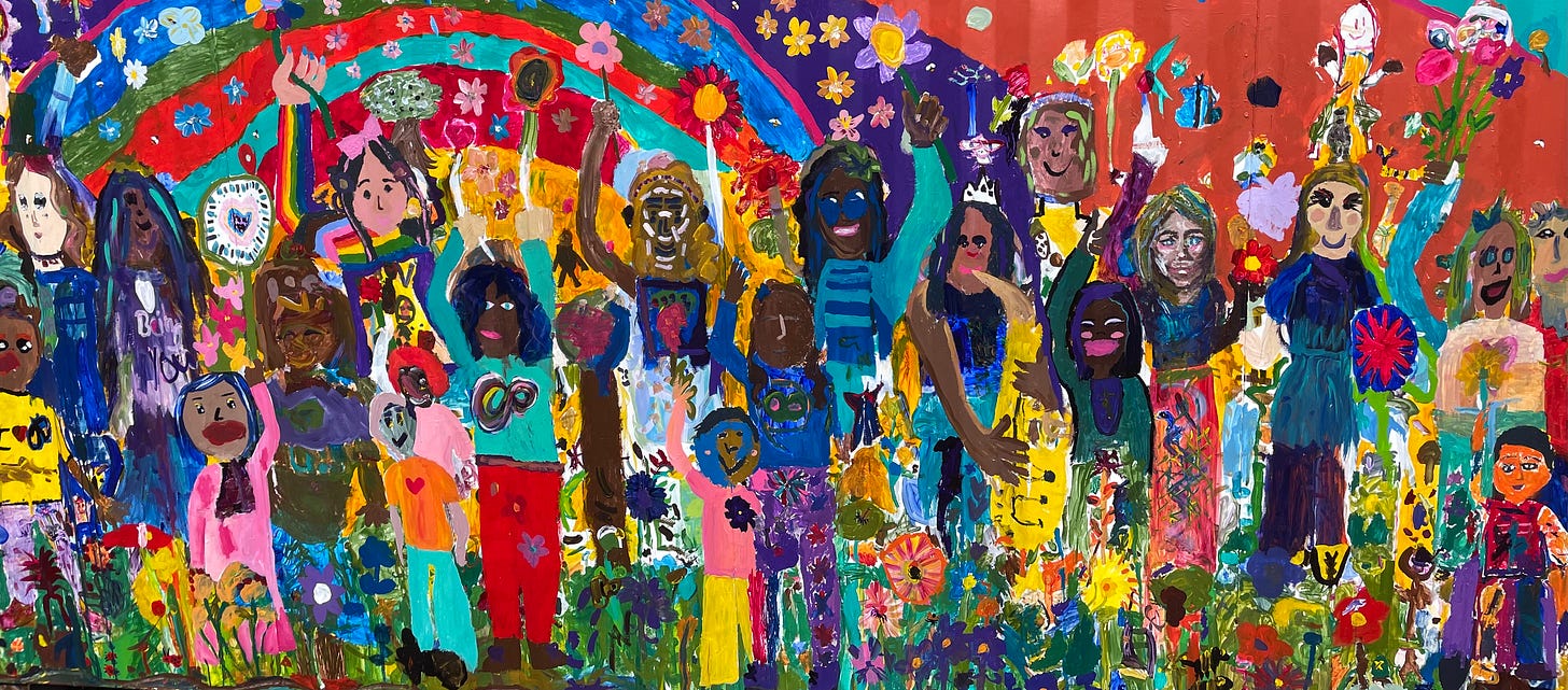 A detail of the mural that came from 400 kids’ embracing the mess.